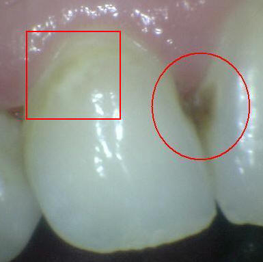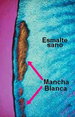 blanca sobre la superficie proximal. Esta es la mancha blanca