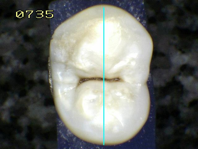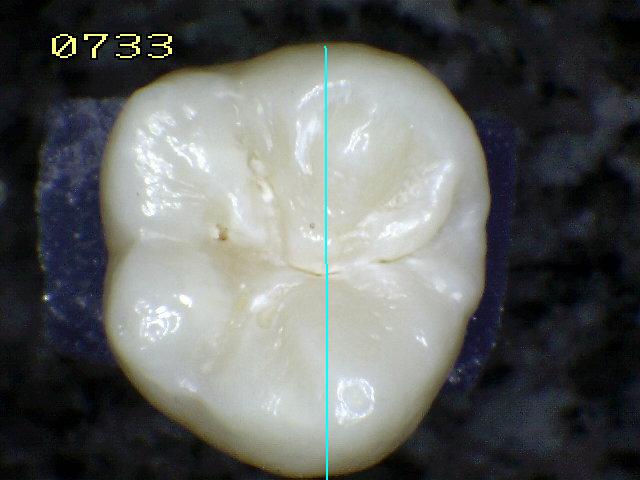 Cuando se ve húmeda no hay evidencia de cambio en el color atribuibles a la actividad de caries, pero después del secado con aire por 5 segundos, una opacidad de caries o cambio de color (mancha blanca o lesión marrón) es visible, lo cual no es consistente con la apariencia clínica del esmalte sano,  el cambio de color se limita al fondo de la fosa o fisura.  La aparición de estas áreas de caries no es consistente con la de las fosas y fisuras teñidas como se define en el código 0.