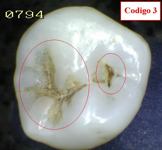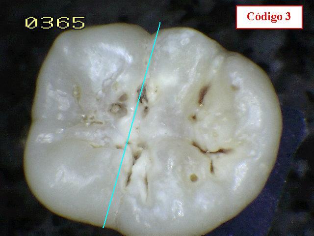 lo tanto al codificarlo lo hacemos como código 3. Esto noocurre en dientes in vivo y en estado húmedo. |