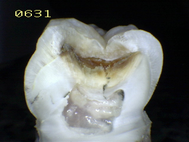 (En grietas o fisuras el grosor del esmalte es entre 0,5 y 1,0 mm. El