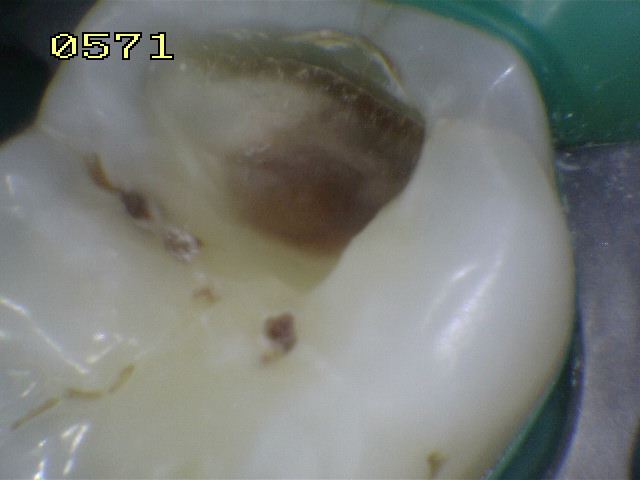 opacità cariata (lesione del punto bianco) e / o una colorazione marrone