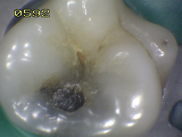 cariosa, ma dopo essiccazione prolungata dell'aria (per circa 5 secondi)