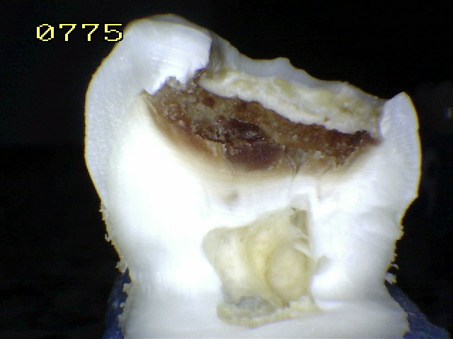 había ninguna evidencia de caries en la superficie, a continuación esa