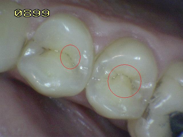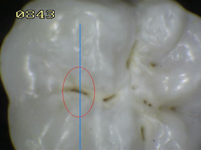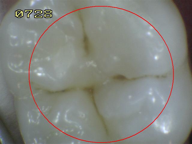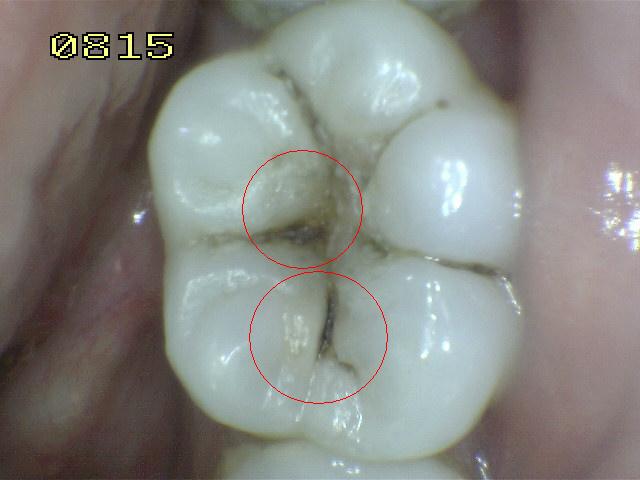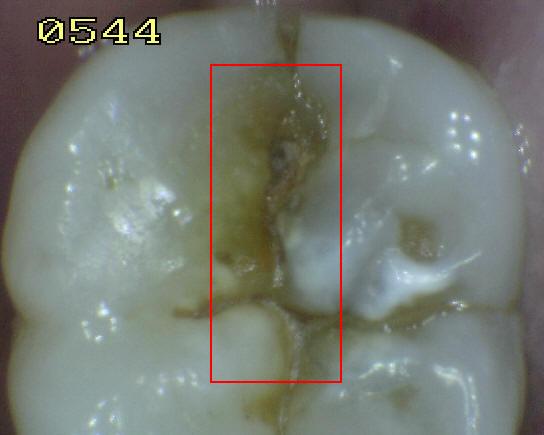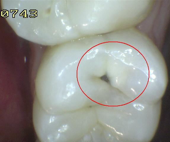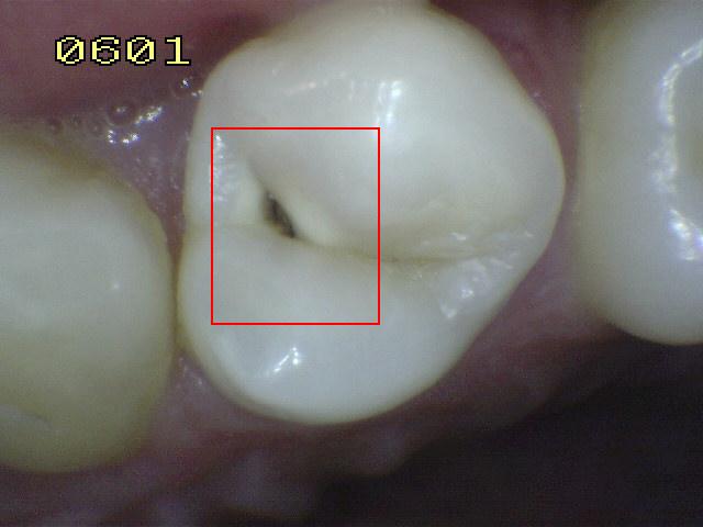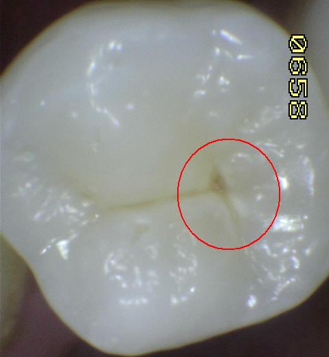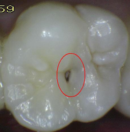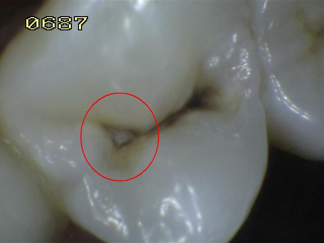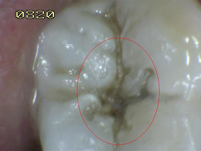largo de la fosa o fisura sospechoso y una cavidad de la dentina se