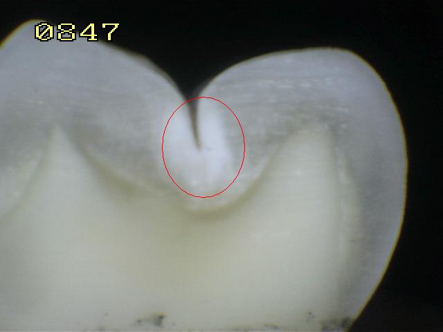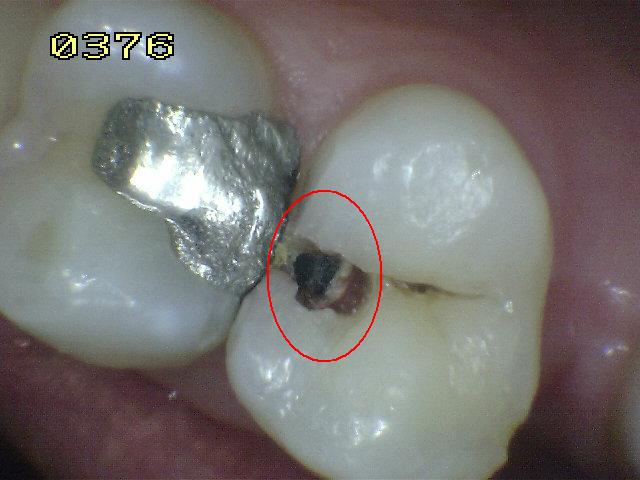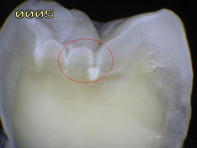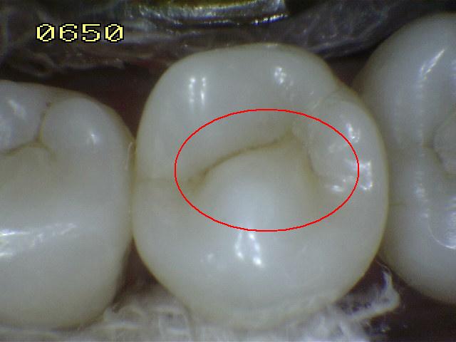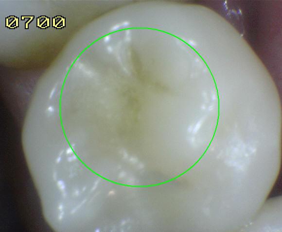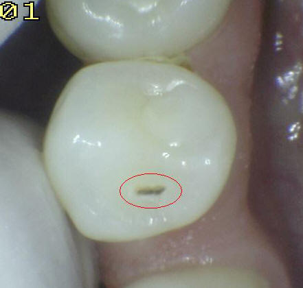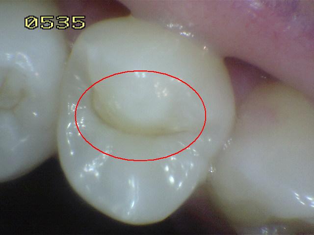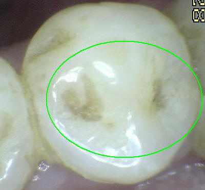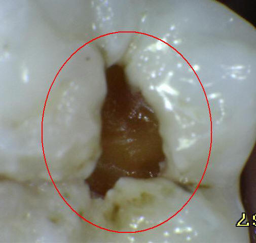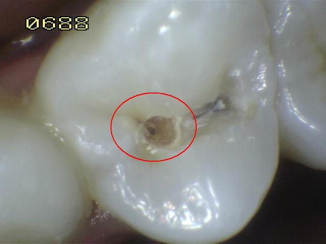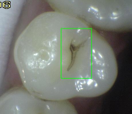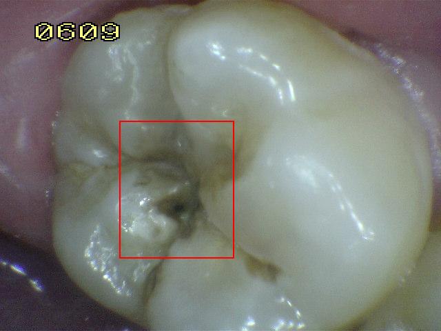 largo de la fosa o fisura sospechoso y una cavidad de la dentina se