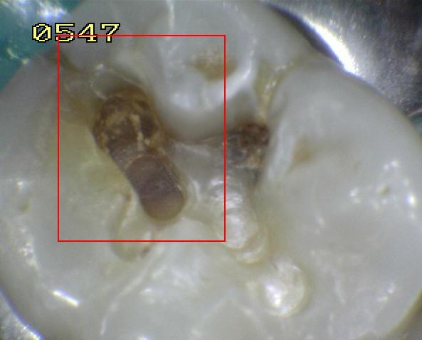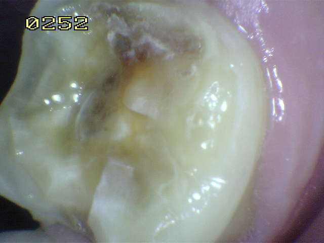 del examinador se observa dentina expuesta en el piso y paredes de la