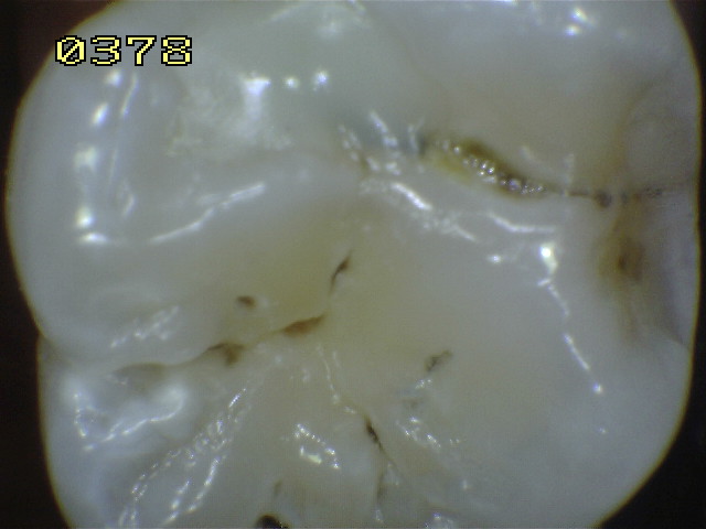 de caries no es consistente con la de las fosas y fisuras teñidas como
