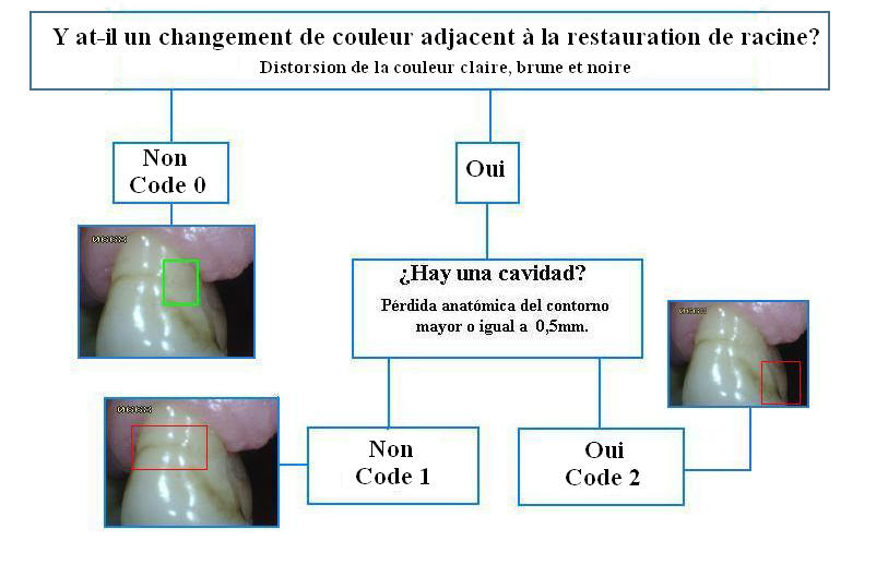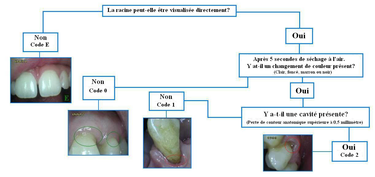 Le diagramme suivant (Figure 1) servira de guide utile aux examinateurs pour décider du codage approprié des caries radiculaires: