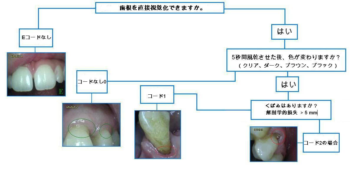 歯肉の後退の結果として、または穏やかな風乾によって、根の表面を直接可視化することができない場合、それは除外される。結石によって完全に覆われた表面は除外することができ、または好ましくは、結石は表面の状態を決定する前に除去することができる。結石の除去は、臨床試験および縦断的研究に推奨されます。