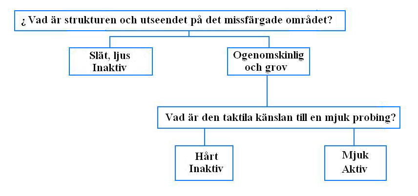 Följande diagram (Figur 3) kommer att vara till hjälp vid bestämning av roddkaries aktivitet: