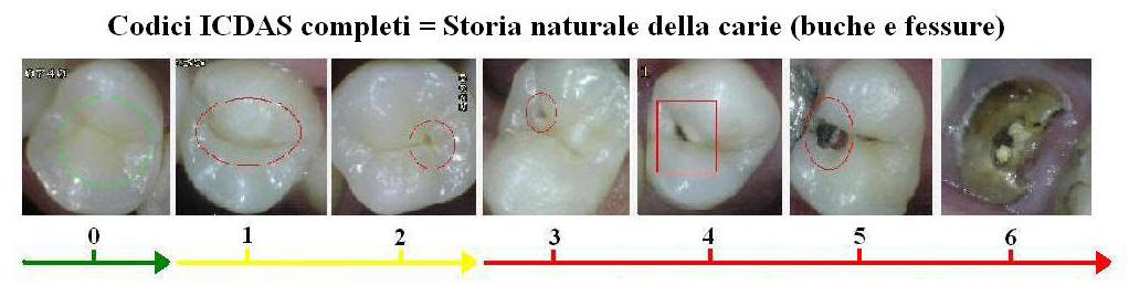 ICDAS Complete presenta 7 categorie, la prima per i denti