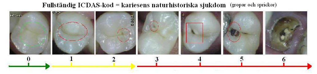 kategorierna (koder 5 och 6) betraktades som karies med