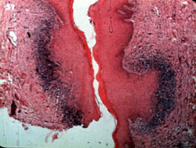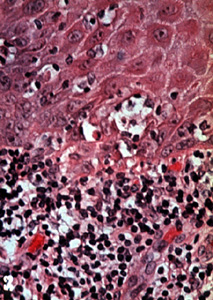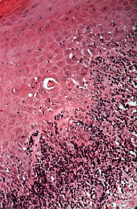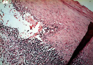 epitelio y el tejido conjuntivo inflamado.