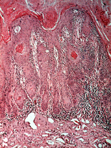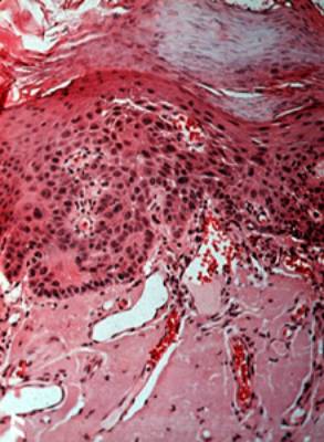 | Las cortes microscópicas de la queilitis actínica