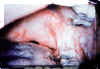 el eritema, erosión y sangrado espontáneo del área.
