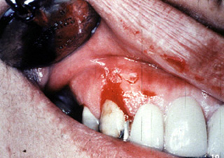 muestra envolvimiento de la encía marginal que podría confundirse con enfermedad periodontal en la ausencia de otras lesiones. Note