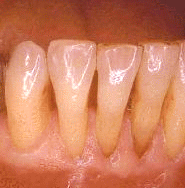 El mismo paciente 10 años después del  tratamiento. El paciente fue  instruído en la higiene dental cuidadosa y la limpieza supragingival profesional se realiza una vez cada tres meses. Ninguna progresión de enfermedad periodontal ha ocurrido.