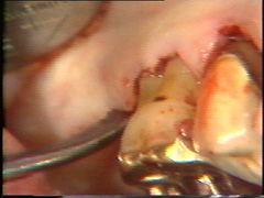 defectos óseos (cráter) es eliminado. En la superficie bucal del segundo premolar hay