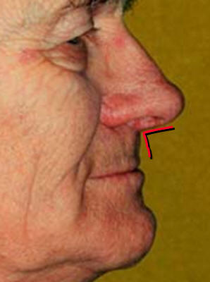 A-  Soporte labial: El ángulo nasolabial debe ser de 90º si esto no se cumple tendrá insuficiente soporte labial y el bermellón  del labio se verá reducido.