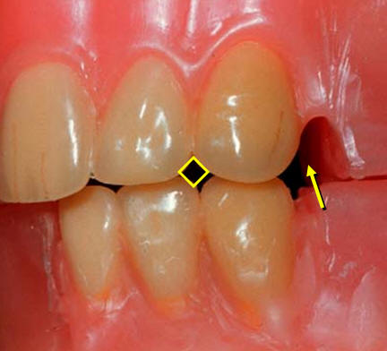 Si es cóncava como en la figura B los detritus alimenticios quedaran confinados en la zona vestibular, dado que la lengua no alcanza esa zona para realizar la auto limpieza.
