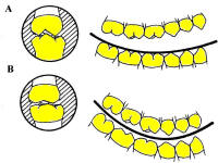 A: Mientras mayor sea su curvatura menor será el espacio entre los molares superiores e inferiores, entonces las cúspides deben ser bajas y las fosas poco profundas.
