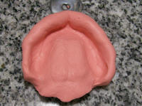 Acondicionamiento con plastilina del del reborde alveolar retentivo Aquí se observa en la tuberosidad derecha. Para realizar la cubeta, se tomo una lamina de acrílico para termo formadora Se debe quitar la protección de naylon