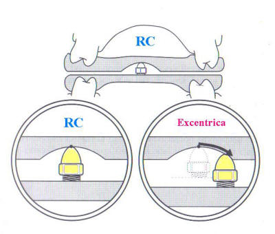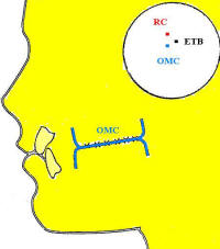 Utilizando un axiógrafo * se puede observar las distintas posiciones de los registros plásticos en RC, con fulcrum anterior y  OMC, en relación al ETB.  Ver diagrama derecho.