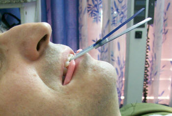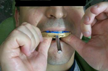Jig ubicado entre los incisivos.