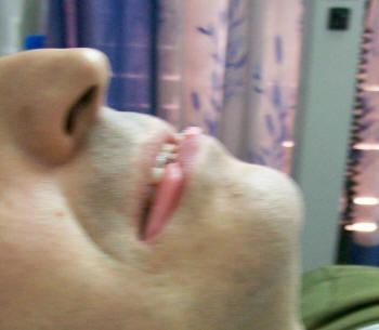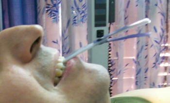 Se agregan más laminillas para que haya una desoclusión completa en el sector posterior, pasado otros 2 o 3 minutos se verifica si aun hay interferencias posteriores. Si hay contacto posterior se le agrega más laminillas hasta obtener la desoclusión completa posterior, esto se logra después de 5 minutos aproximadamente. En este momento el paciente suele sentir molestia o dolor por fatiga muscular debido a la contracción tónica de los músculos temporales. (A)