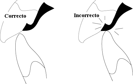 menor a 90º con respecto al reborde marginal. Para ello el explorador es