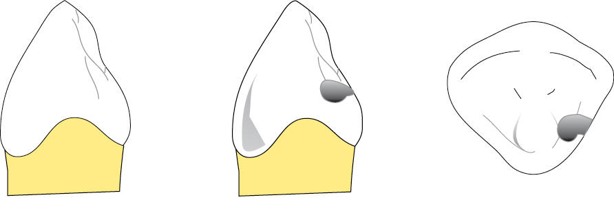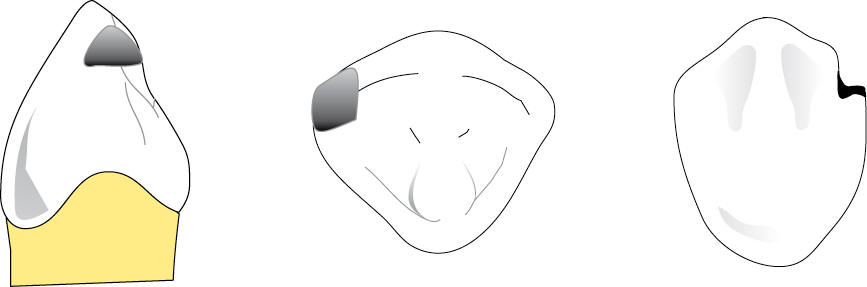 | Distintas ubicaciones del apoyo oclusal en canino, cuando esta pieza