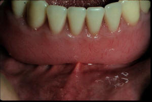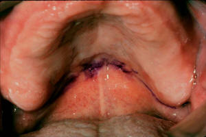 frenillo labial y el músculo borla del mentón, cuando el reborde alveolar