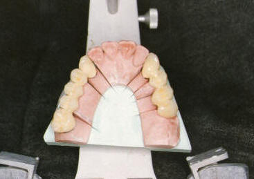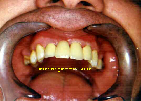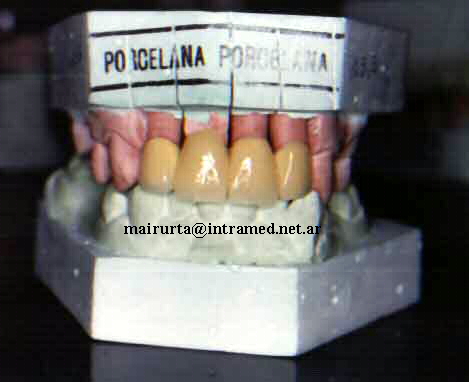Perno muñón colado en los diente pilares, permite un mayor desgaste sin pérdida de resistencia. 1 mm de metal y 2,5mm de opaquer y porcelana