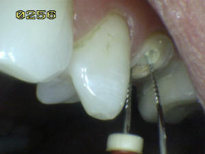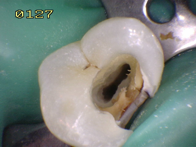 La elevada incidencia de  fractura vertical mesiodistal coronorradicular en el primer premolar requiere de  la eliminación de toda la restauración y la inspección visual con un medio de magnificación de imagen.