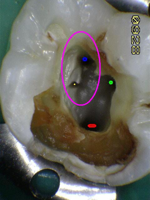 Cuarto conducto en molares superiores (Color amarillo conducto mesio-palatino)