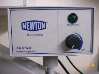La consola para encender el led está alejada de las manos del operador. Consta de una perilla de encendido y un potenciómetro para regular la intensidad de la luz.