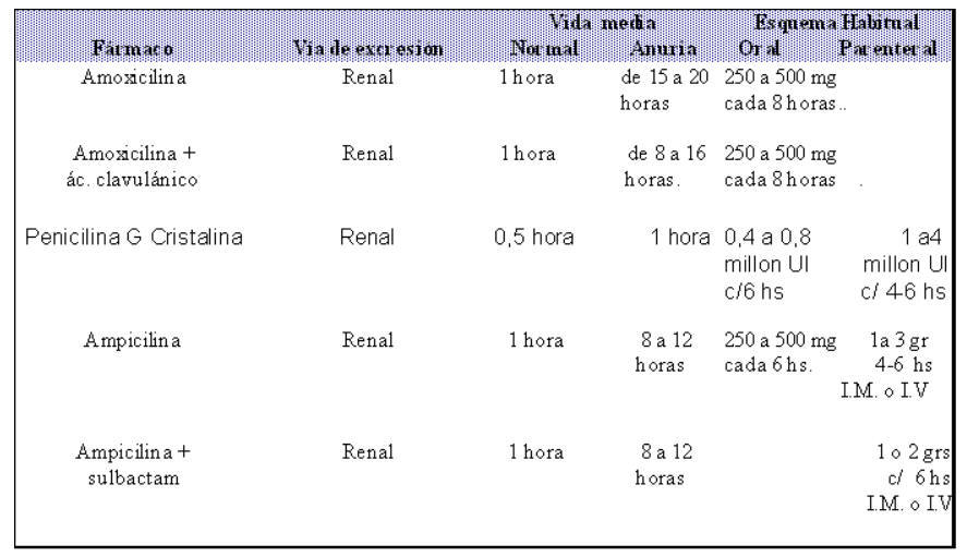 Normas de dosificación de penicilinas